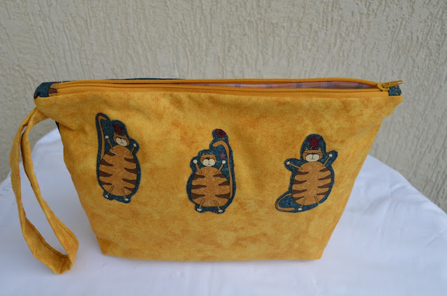 Madre mía cuantas bolsas, estuches, neceseres.... Me encanta la imaginación que pones al hacerlos para que no hayan dos iguales. La bolsa grande es preciosa, al tela que has usado es muy bonita y el detalle del colgante. Me gusta .