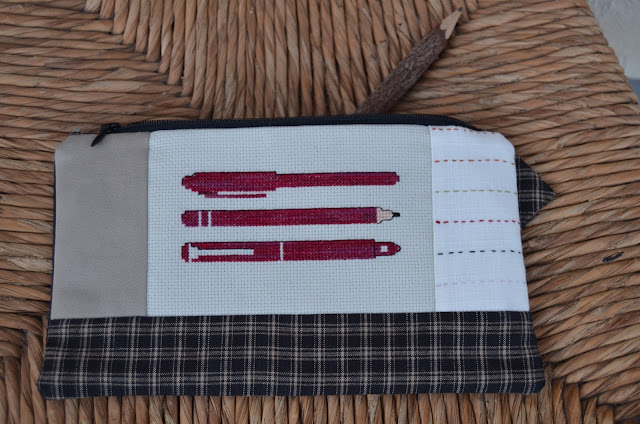 Un diseño de Luli, que me llamó la atención cuando lo vi. Lo guardé y ahora que estoy en "modo punto de cruz" lo he bordado. Tenía un trocito de Aida y ese gráfico encajaba perfectamente. Una vez terminado la bolsa para los bolígrafos era el destino indicado.