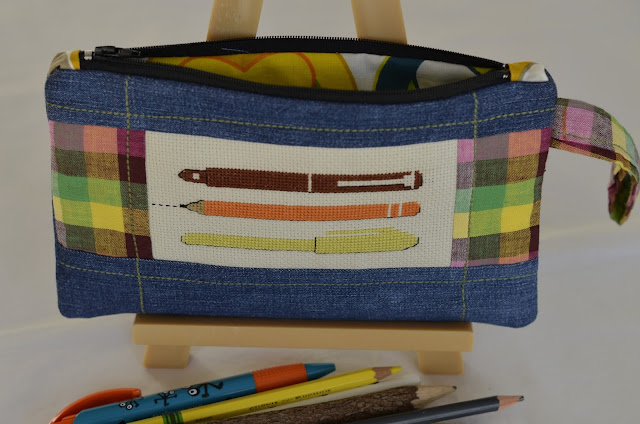 El gráfico es un free de Luli lo tenéis aquí. Ya lo he bordado en dos ocasiones anteriores, una de ellas aquí y la otra aquí, por eso os decía que son cinco. La novedad es que he puesto una nota de color en los lápices, bolígrafos y plumas y he añadido un trazo discontinuo en el lápiz... que me parece que queda bien.