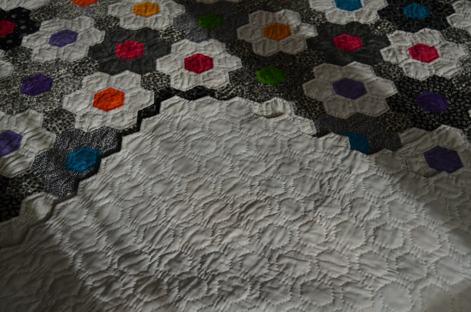 Esta vez le ha tocado al quilt de hexágonos. Es un quilt que hicimos Vicen, (mi madre) y yo. Os lo contaba todo aquí.